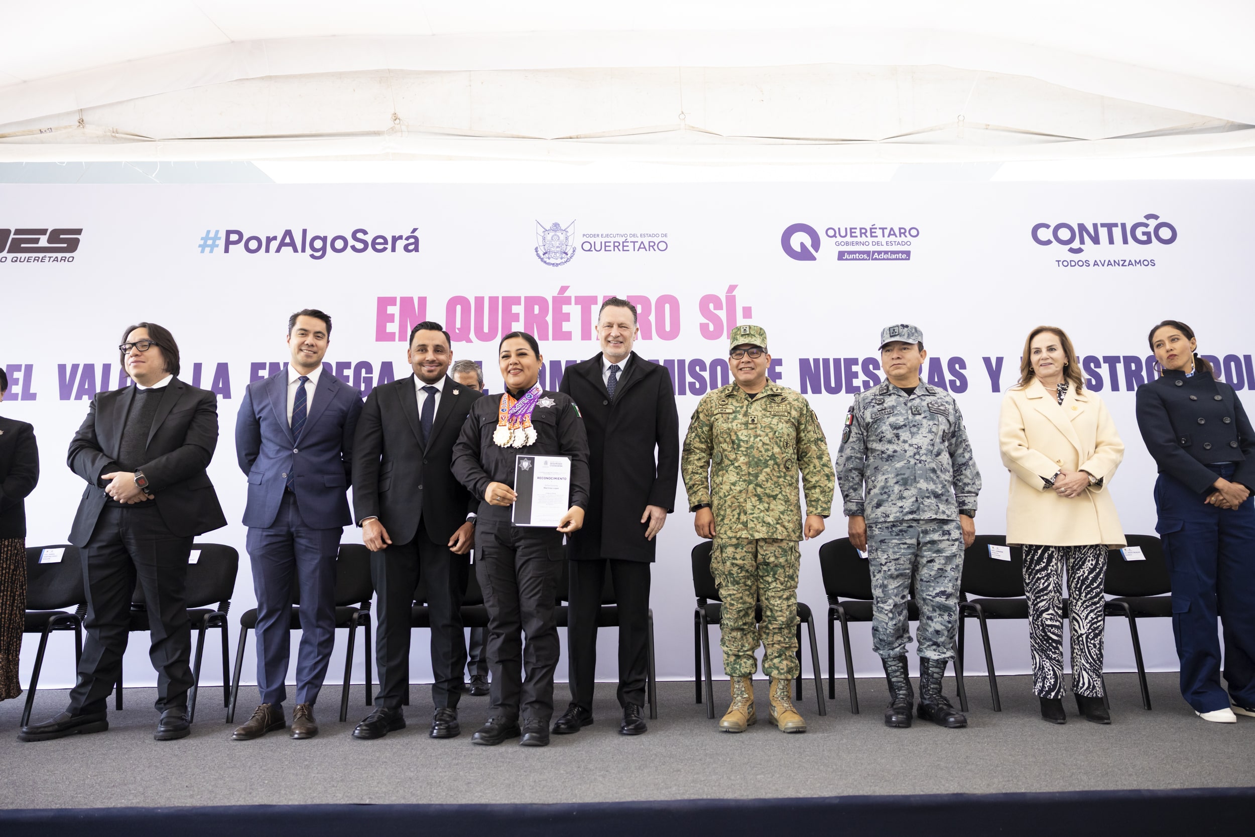 “Porque ser policía también es inspirar con el ejemplo, demostrar que la fuerza del cuerpo y de la mente se nutren de los mismos principios, la constancia, la unidad y la pasión por mejorar cada día. Ambos tipos de acciones, salvar vidas y representar con orgullo, son expresiones distintas del mismo espíritu, el de servir con propósito y con grandeza. Hoy, más que medallas o reconocimientos, entregamos un mensaje de admiración, respeto y gratitud. Señor Gobernador, nos acompaña una parte importante de la Policía Estatal de Querétaro, hombres y mujeres con capacidad comprobada, alto sentido de pertenencia y una enorme vocación de servicio que los ha llevado a posicionar a nuestra agencia de seguridad y a todo el estado como un referente nacional”, resaltó.