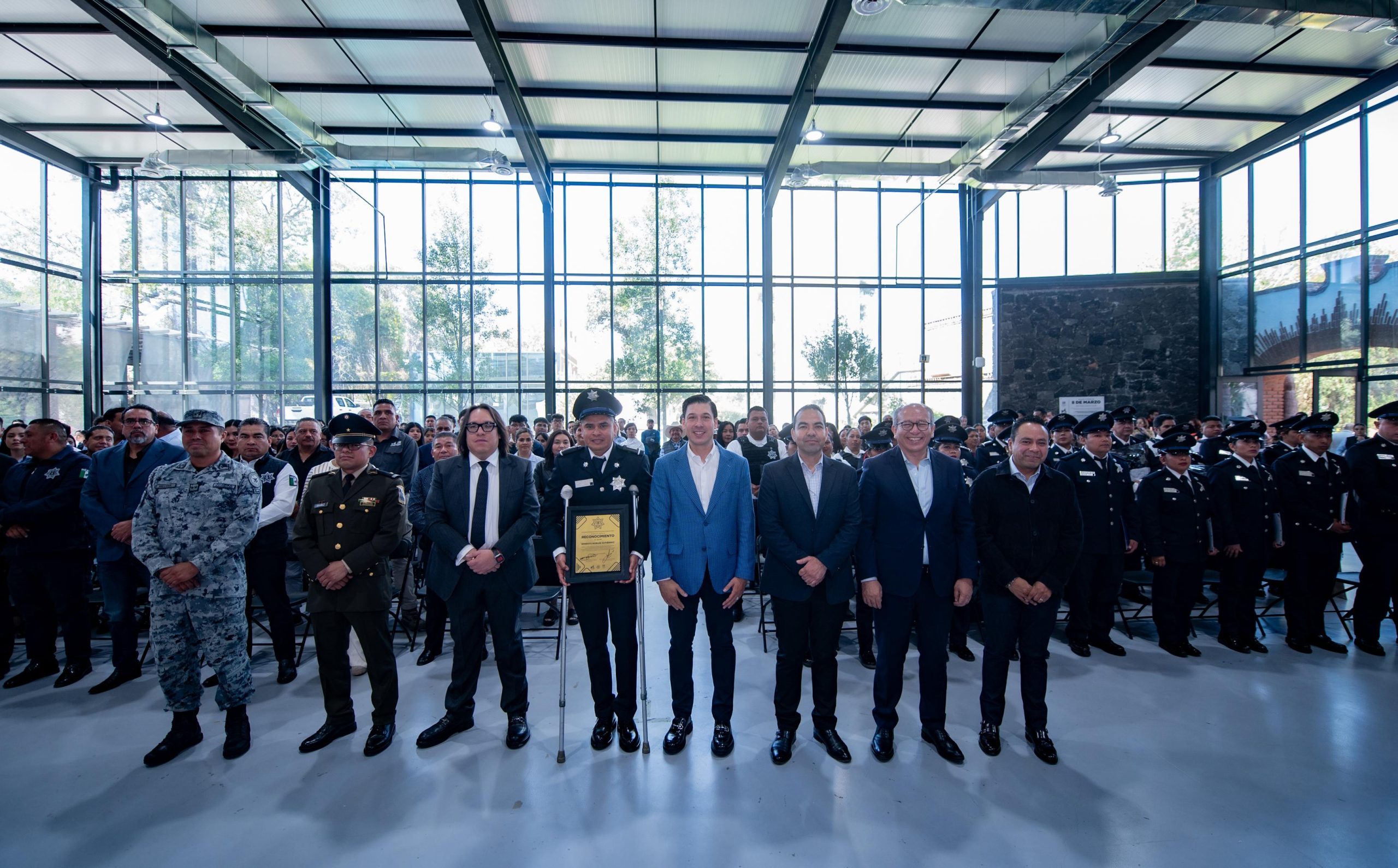 Durante la ceremonia, se vivió un momento de especial solemnidad al entregarse un reconocimiento al valor al oficial Ernesto Robles Gutiérrez. El elemento fue distinguido por su valentía y compromiso tras resultar lesionado en el cumplimiento de su deber durante una intervención operativa para salvaguardar la integridad de los ciudadanos. Este acto subraya la política de dignificación policial que impulsa la actual administración para reconocer el sacrificio y la entrega de quienes velan por el orden público.